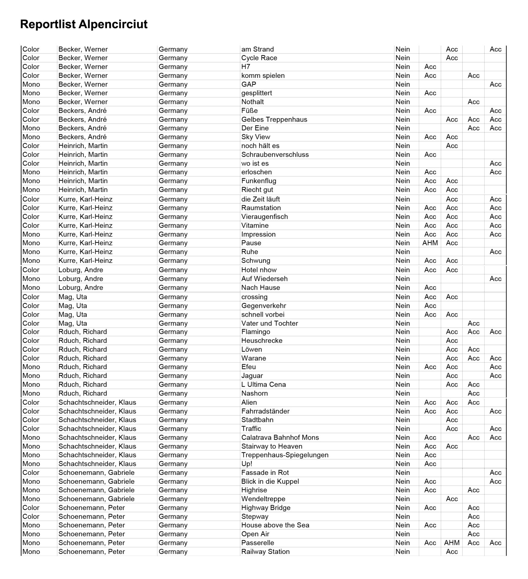 Reportlist Alpencirciut